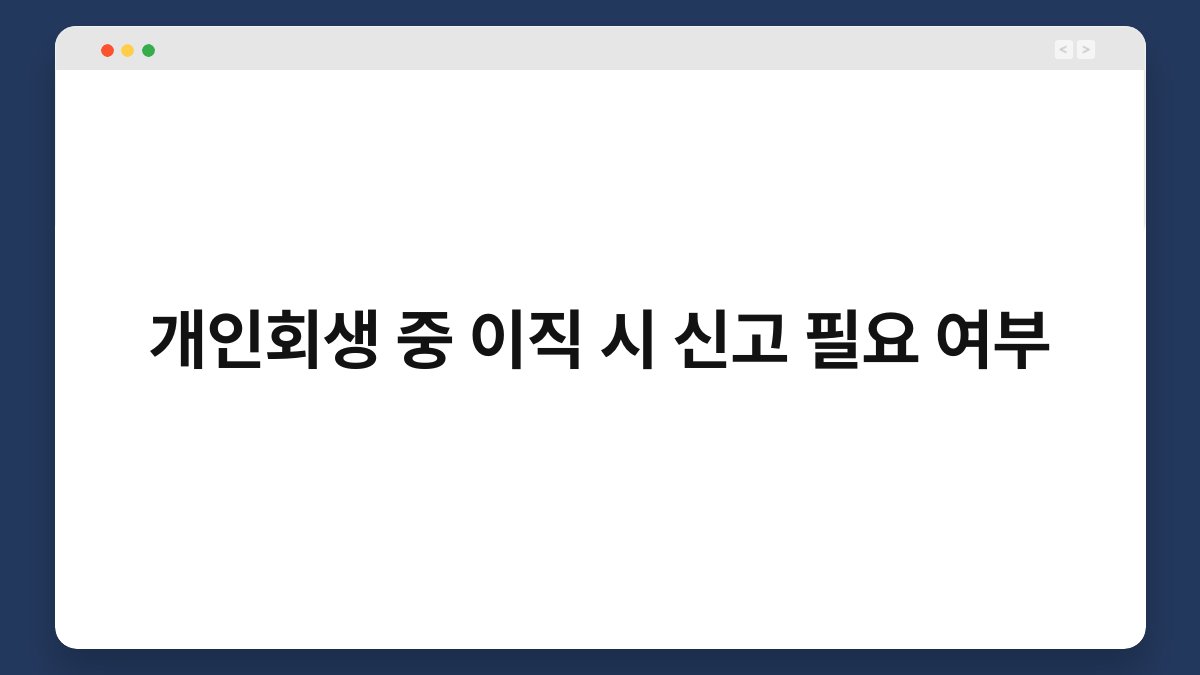 개인회생 중 이직을 고려하고 계신가요? 새로운 직장으로의 변화를 꿈꾸는 것은 자연스러운 일이지만, 개인회생 절차에서는 몇 가지 중요한 점을 알아두어야 합니다. 이직 시 신고가 필요한지에 대한 의문이 생길 수 있는데요, 이 글에서는 그에 대한 명확한 정보를 제공하겠습니다. 개인회생 중 이직을 계획하고 계신 분들에게 도움이 될 수 있도록 자세히 설명드릴게요. 끝까지 함께 해주세요. 개인회생과 이직의 관계 개인회생이란? … 더 읽기