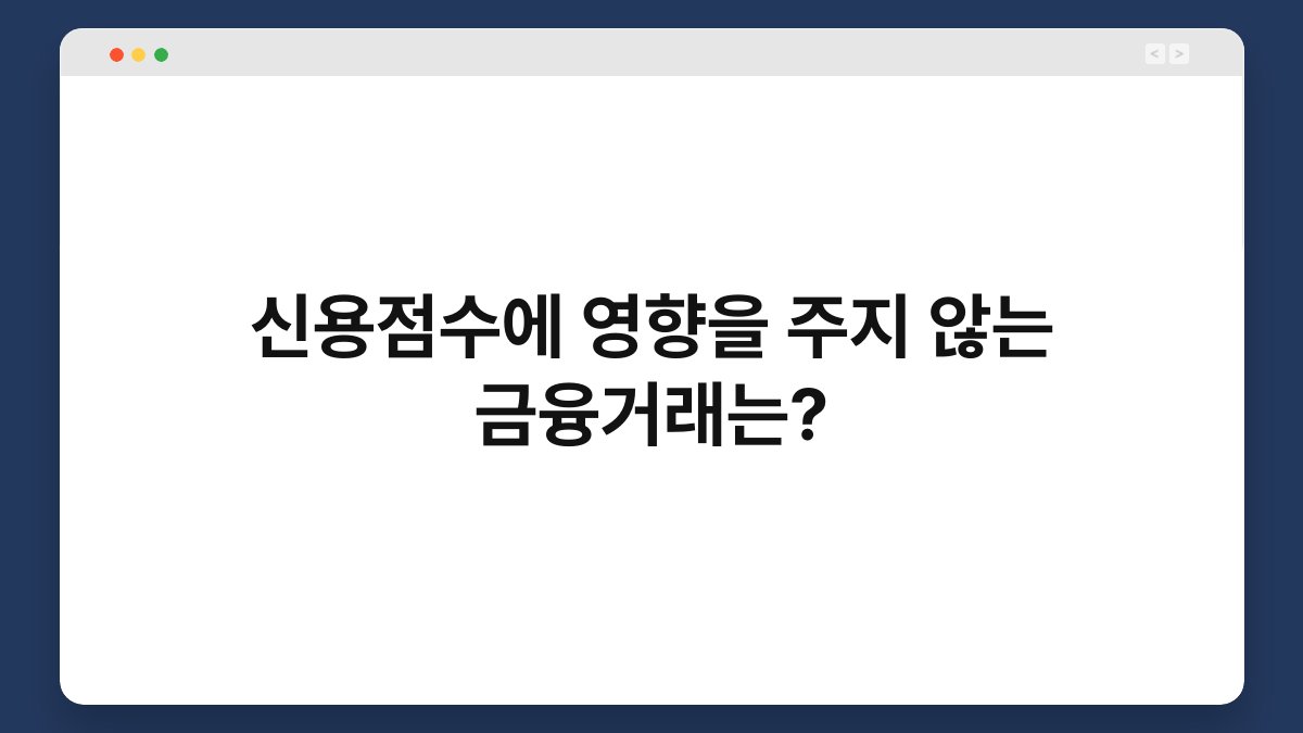 신용점수, 이건 많은 분들이 신경 쓰는 부분이죠? 하지만 신용점수에 영향을 주지 않는 금융거래가 있다는 사실, 알고 계셨나요? 금융 거래를 잘 활용하면 신용점수를 관리하는 데 도움을 줄 수 있습니다. 이번 글에서는 신용점수에 영향을 주지 않는 금융거래의 종류와 그 의미를 살펴보겠습니다. 이 정보를 통해 여러분의 금융 생활에 도움이 되길 바랍니다. 현금 거래의 장점 신용점수와 현금 거래 신용점수는 … 더 읽기