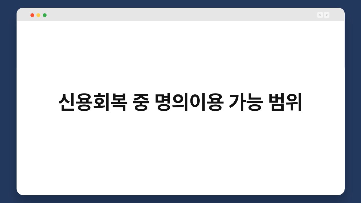 신용회복 중 명의 이용 가능 범위에 대해 궁금하신가요? 많은 분들이 신용회복의 과정에서 명의 이용이 어떤 방식으로 이루어지는지, 그리고 그 범위가 어디까지인지에 대해 고민합니다. 신용회복은 단순히 부채를 줄이는 것뿐만 아니라, 올바른 방법으로 진행해야 효과를 극대화할 수 있습니다. 이 글에서는 신용회복 중 명의 이용 가능 범위를 자세히 살펴보며, 여러분의 궁금증을 해결해드리겠습니다. 끝까지 읽으시면 유용한 정보가 가득하니 기대해 … 더 읽기