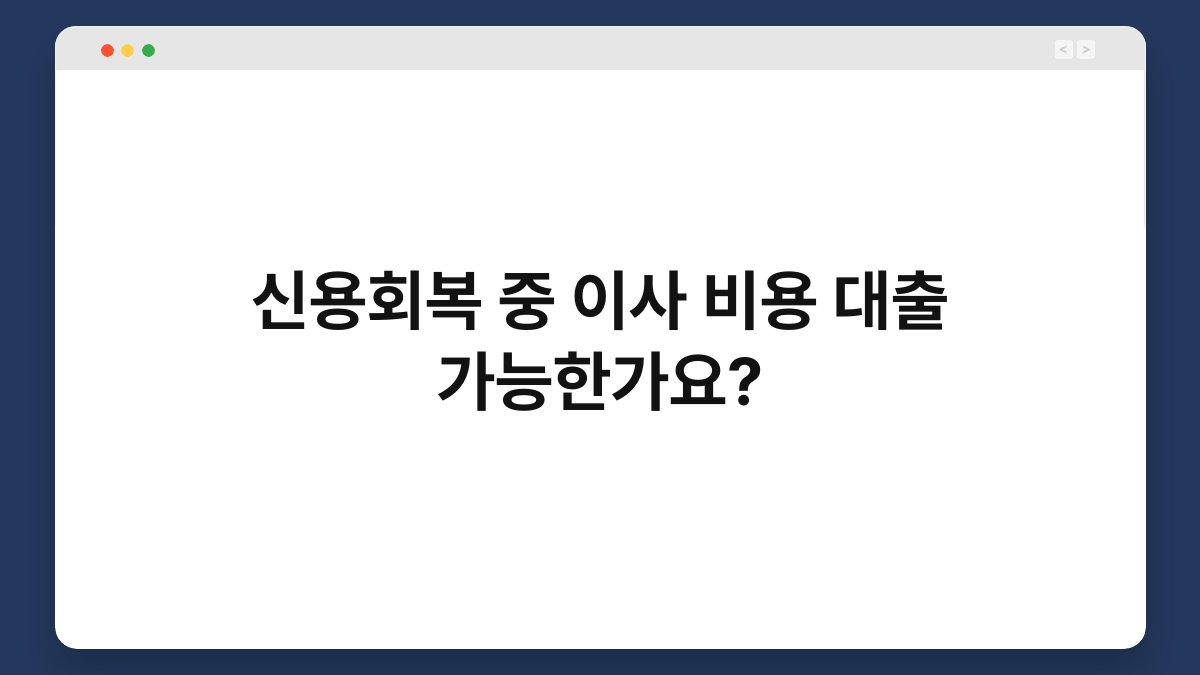 신용회복 중 이사 비용 대출이 가능할까? 많은 분들이 신용회복 과정을 겪으면서 이사에 대한 고민을 하게 됩니다. 이사 비용은 생각보다 큰 부담이 될 수 있는데요. 과연 신용회복 중에도 이사 비용을 대출 받을 수 있는지, 그 방법은 무엇인지 알아보겠습니다. 이 글을 통해 신용회복 중 이사 비용 대출에 대한 궁금증을 해소해 보세요. 신용회복과 이사 비용 대출의 관계 신용회복 … 더 읽기
