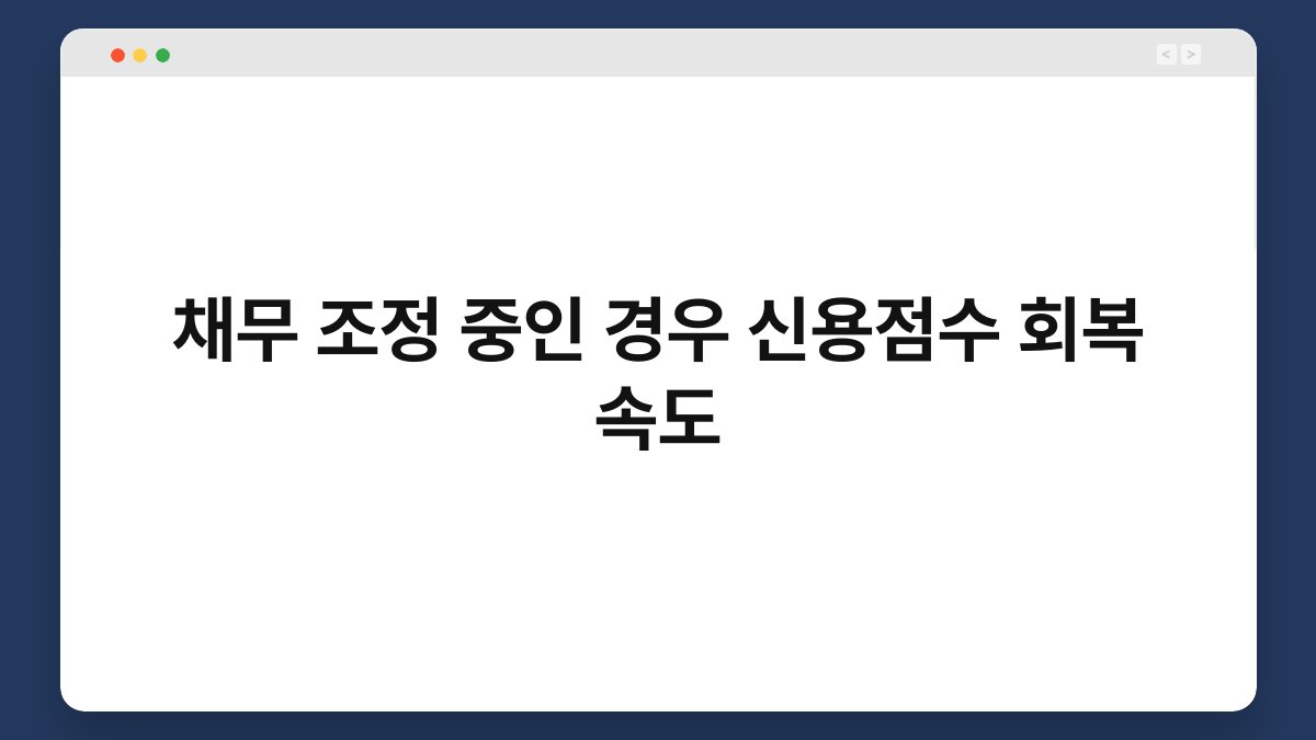 채무 조정을 진행 중인 분들이라면 신용점수 회복에 대한 고민이 많으실 것입니다. 채무 조정은 재정적인 압박을 덜어주는 중요한 과정이지만, 신용점수에 미치는 영향은 복잡합니다. 이 글에서는 채무 조정 중인 경우 신용점수 회복 속도를 살펴보며, 어떻게 하면 효과적으로 점수를 개선할 수 있는지에 대해 알아보겠습니다. 도움이 되는 정보가 가득하니 끝까지 함께 해주세요. 채무 조정의 기본 이해 채무 조정이란 무엇인가요? … 더 읽기