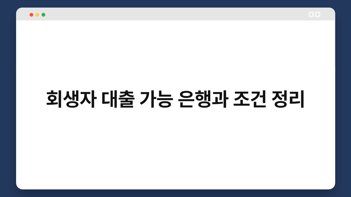 부채, 대출, 그리고 경제적 어려움, 누구나 한 번쯤은 겪어보는 문제죠? 하지만 회생자라면 대출에 대한 고민이 더욱 깊어질 수 있습니다. 대출이 어려운 상황에서도 회생자가 이용할 수 있는 대출 상품과 조건을 알아보면, 새로운 희망의 불씨가 될 수 있습니다. 이 글에서는 회생자 대출이 가능한 은행과 그 조건에 대해 자세히 설명드리겠습니다. 끝까지 읽고 필요한 정보를 챙기세요! 회생자 대출이란? 회생자 … 더 읽기