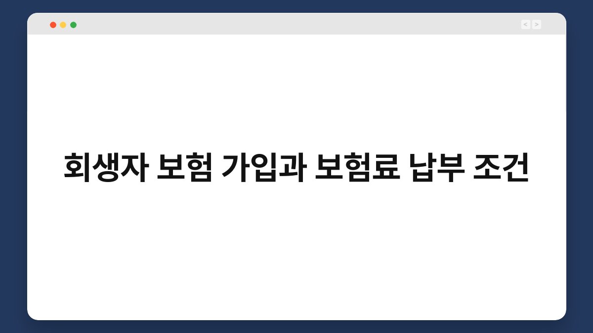 어려운 상황에 처한 분들이 많습니다. 특히 회생자 보험 가입과 보험료 납부 조건에 대해 고민하는 분들이 많죠. 이런 고민은 결코 혼자만의 문제가 아닙니다. 오늘은 회생자 보험의 가입 조건과 보험료 납부 방법에 대해 자세히 알아보겠습니다. 이 글을 통해 여러분의 궁금증이 해결되길 바랍니다. 회생자 보험의 필요성 회생자 보험은 신용 회복을 위한 중요한 도구입니다. 회생 절차를 거친 분들은 금융 … 더 읽기