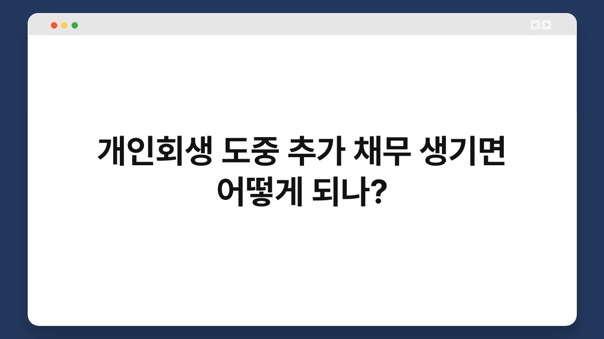 채무 문제로 고민하는 분들이 많습니다. 특히 개인회생을 진행 중일 때 추가 채무가 발생하면 어떻게 해야 할지 막막하죠. 개인회생 도중 추가 채무가 생기면 상황이 복잡해질 수 있습니다. 이 글에서는 이러한 상황에서 취해야 할 조치와 대처 방법에 대해 알아보겠습니다. 마지막까지 읽으시면 유용한 정보를 얻으실 수 있을 거예요. 개인회생 중 추가 채무 발생 시 신고 필요성 추가 채무 … 더 읽기