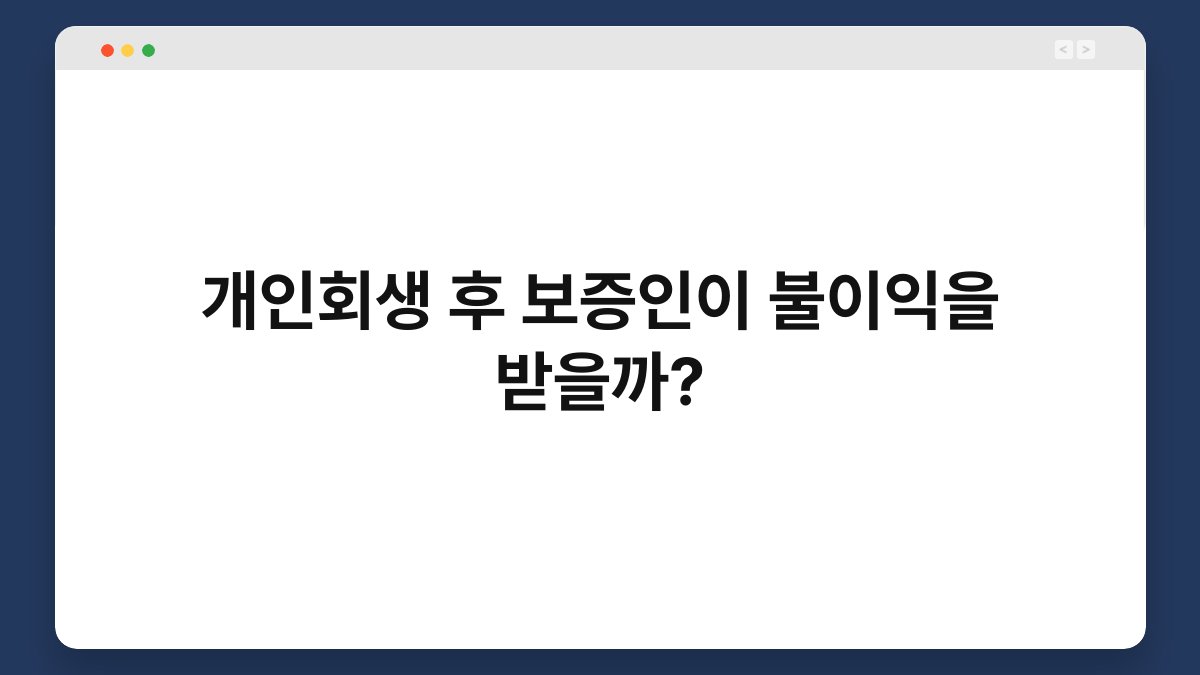 개인회생, 많은 분들이 이 단어를 들으면 복잡한 상황이 떠오르죠. 하지만 개인회생을 통해 새 출발을 할 수 있는 기회를 얻는 것 또한 중요한 사실입니다. 그렇다면 개인회생 후 보증인이 불이익을 받을 수 있는지 궁금하실 텐데요. 이 글에서는 개인회생과 보증인의 관계, 그리고 보증인이 받을 수 있는 영향에 대해 자세히 알아보겠습니다. 이 내용을 통해 여러분의 궁금증이 해소되기를 바랍니다. 개인회생과 … 더 읽기