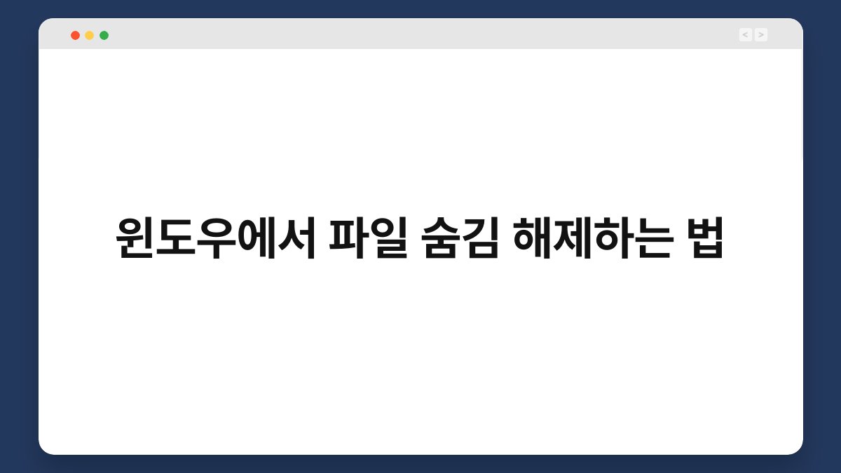 컴퓨터를 사용할 때, 가끔은 필요한 파일이 보이지 않아 당황스러운 경험을 하셨을 겁니다. 특히 윈도우에서 숨겨진 파일을 찾으려 할 때 더욱 그러죠. 숨김 해제하는 법을 알면, 잃어버린 파일을 쉽게 찾아낼 수 있습니다. 이 글에서는 윈도우에서 파일 숨김을 해제하는 다양한 방법을 소개할 것입니다. 지금부터 함께 알아보도록 하겠습니다. 파일 탐색기에서 숨김 파일 보기 설정하기 숨김 파일 보기 활성화하기 … 더 읽기