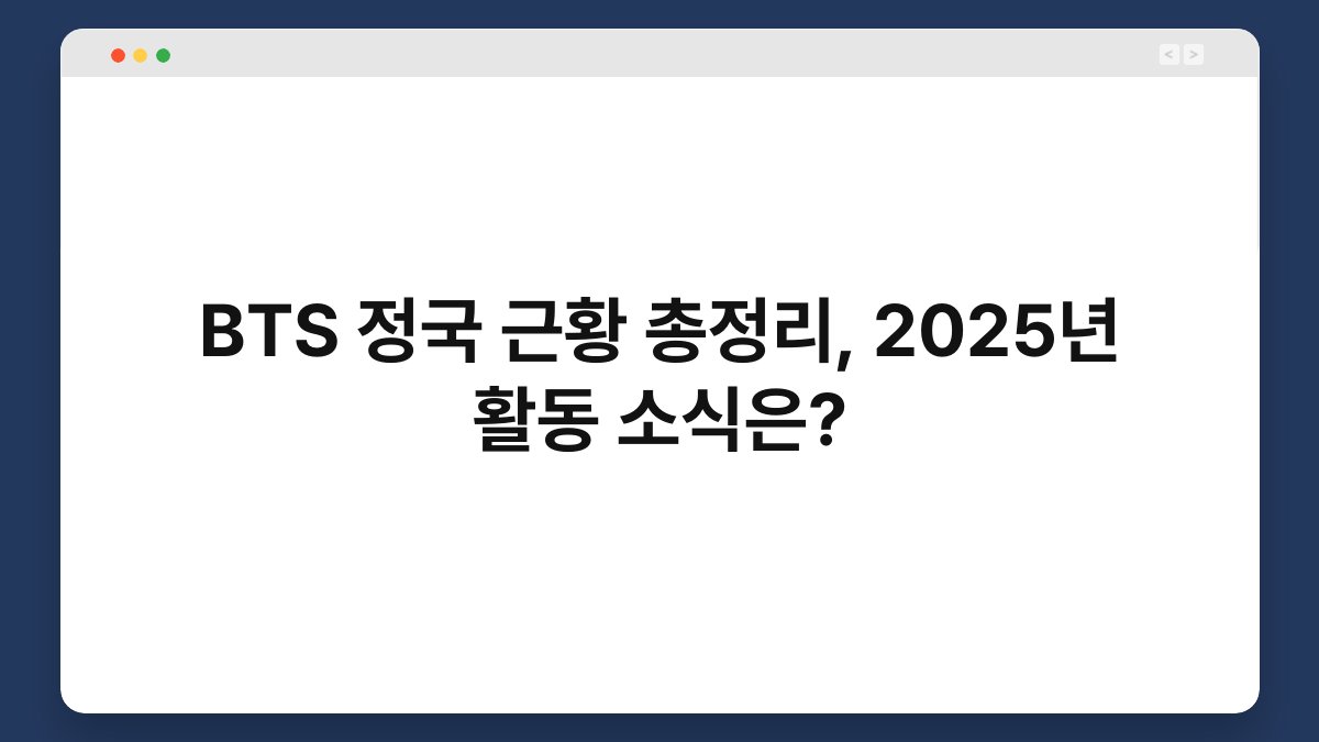 BTS 정국 근황 총정리, 2025년 활동 소식은?
