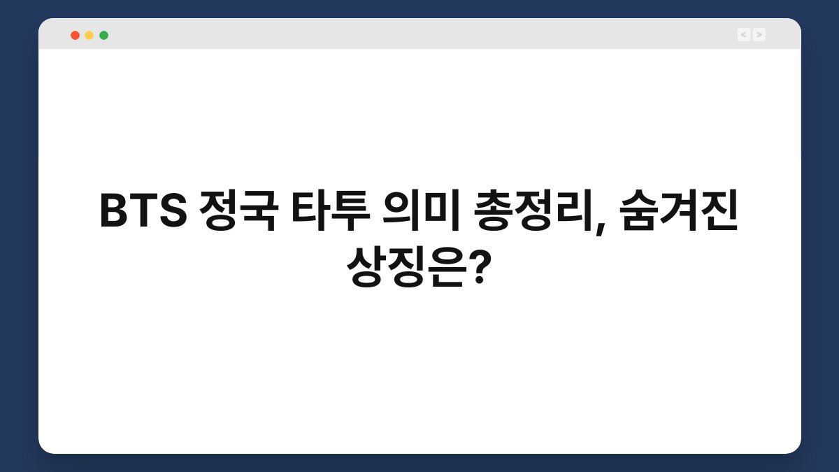 BTS 정국 타투 의미 총정리, 숨겨진 상징은?
