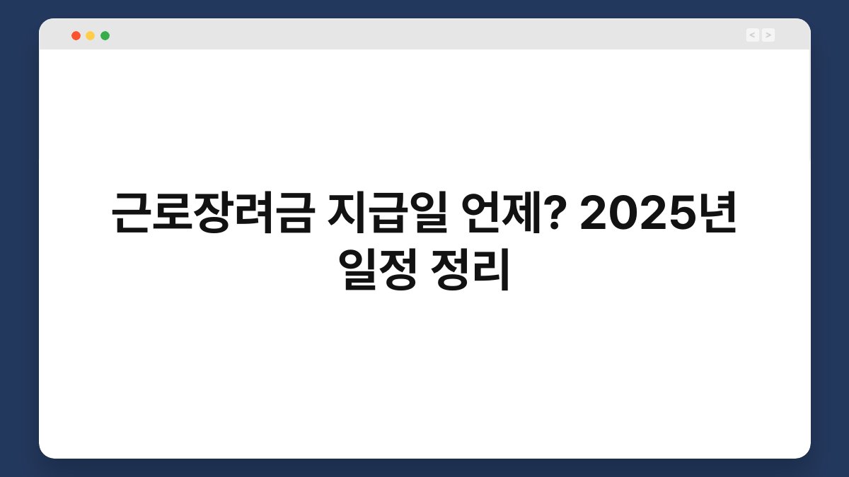 근로장려금, 많은 분들이 궁금해하시는 주제죠? 특히 2025년의 지급일은 언제인지, 그 일정에 대해 미리 알고 있으면 유용할 것입니다. 이번 글에서는 근로장려금 지급일과 관련된 정보를 꼼꼼히 정리해 드리겠습니다. 이 정보를 통해 보다 계획적으로 재정 관리를 할 수 있는 기회를 제공하고자 합니다. 궁금한 점들을 함께 알아보아요! 2025년 근로장려금 지급일 지급일 일정 2025년 근로장려금 지급일은 5월, 8월, 11월로 예정되어 … 더 읽기