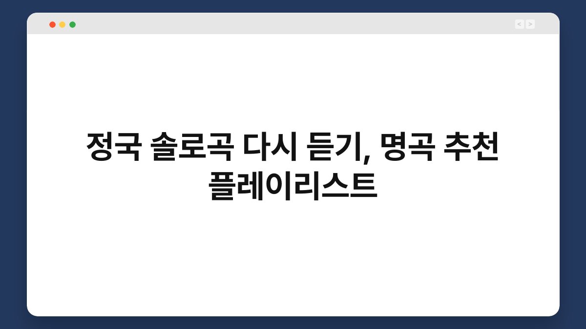 정국 솔로곡 다시 듣기, 명곡 추천 플레이리스트