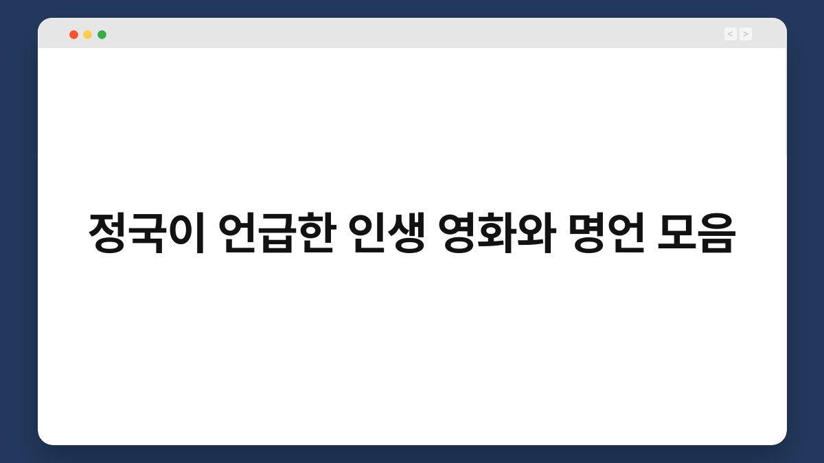 영화는 우리 삶에 깊은 영향을 미치는 매체입니다. 특히 정국이 언급한 인생 영화와 그에 따른 명언은 많은 이들에게 영감을 줍니다. 이번 글에서는 정국이 추천하는 영화와 그 속에 담긴 명언을 통해 삶의 의미를 되새겨보려 합니다. 이러한 영화와 명언들은 우리에게 긍정적인 에너지를 주고, 어려운 순간에 힘을 주는 지침이 될 수 있습니다. 함께 알아볼까요? 정국이 추천한 인생 영화 감정의 … 더 읽기