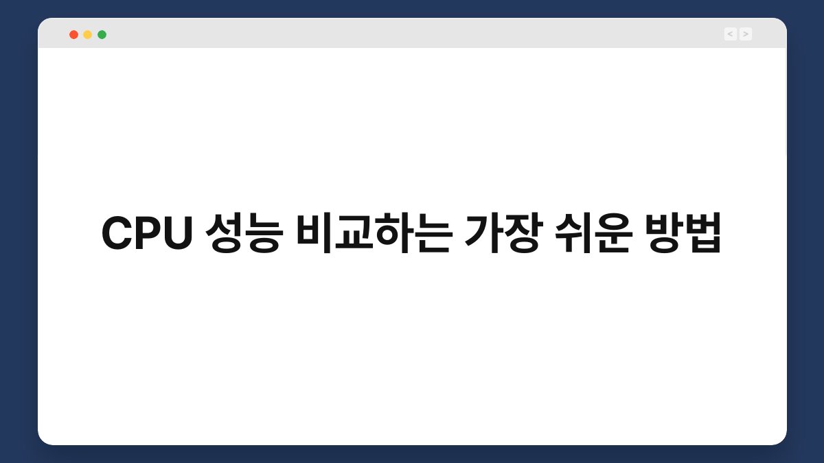 CPU 성능을 비교하는 방법, 정말 어렵게 느껴지시죠? 하지만 복잡하게 생각할 필요 없어요. CPU 성능 비교는 몇 가지 간단한 기준을 통해 쉽게 접근할 수 있습니다. 이 글에서는 CPU 성능을 비교하는 가장 쉬운 방법에 대해 알아보겠습니다. 여러분이 CPU를 선택할 때 도움이 될 만한 유용한 정보가 가득하니 끝까지 함께해 주세요.