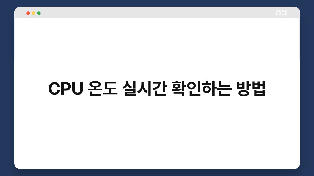 컴퓨터를 사용할 때 CPU 온도가 너무 높아지면 불안해지죠? 과열은 성능 저하나 하드웨어 손상을 초래할 수 있기 때문에, 실시간으로 CPU 온도를 확인하는 방법을 아는 것이 중요합니다. 이 글에서는 CPU 온도를 확인하는 다양한 방법을 소개하며, 여러분의 시스템을 안전하게 관리하는 팁을 제공하겠습니다. 함께 알아보면 좋을 것 같아요!
