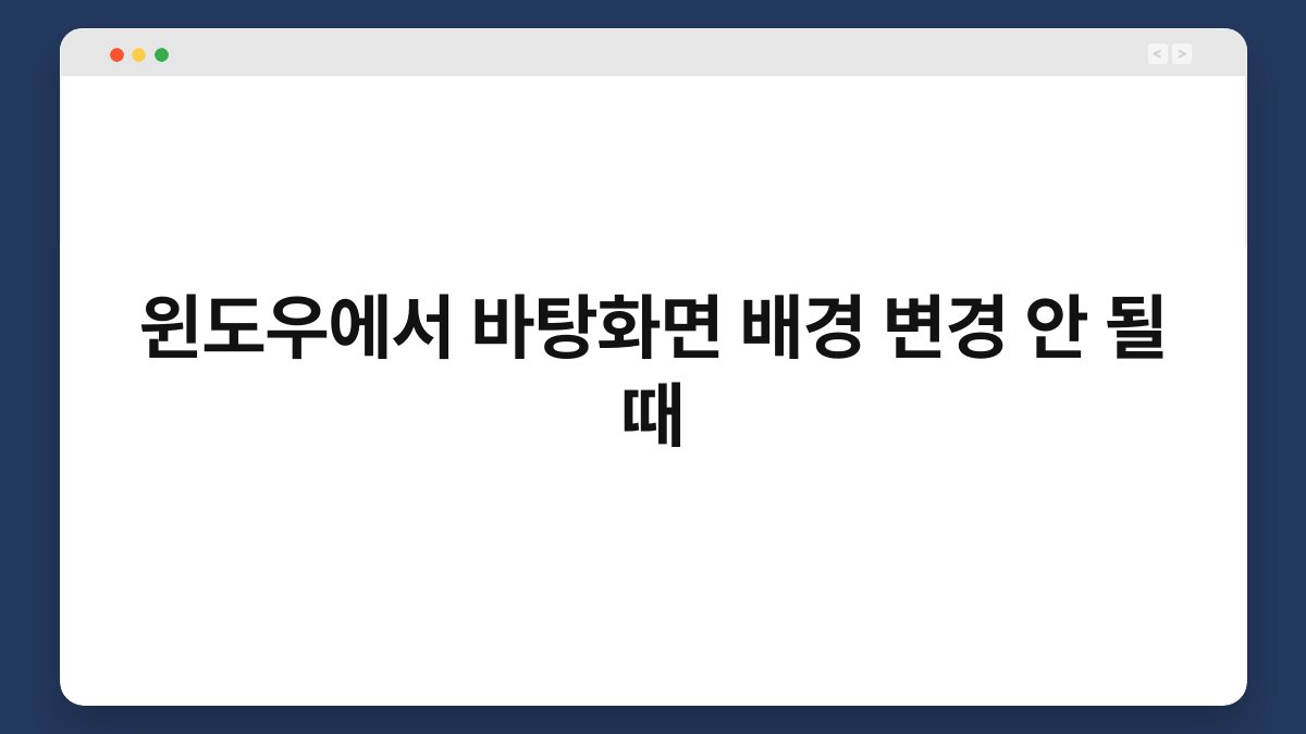 윈도우에서 바탕화면 배경 변경이 안 될 때, 정말 당황스럽죠? 원하는 이미지를 설정하려고 해도, 갑자기 바탕화면이 고정되거나 설정이 되지 않는 경우가 많습니다. 이런 상황에서 어떻게 대처해야 할까요? 이 글에서는 윈도우에서 바탕화면 배경 변경이 안 되는 문제를 해결하는 방법을 단계별로 안내해 드리겠습니다. 함께 이 문제를 해결해 보아요! 바탕화면 배경 설정 확인하기 기본 설정 점검 윈도우에서 바탕화면 배경이 … 더 읽기