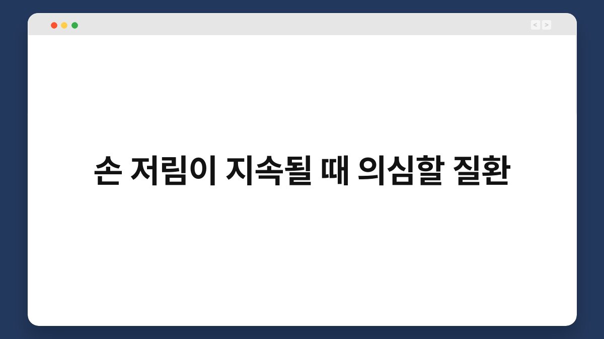 손 저림이 지속되면 불안한 마음이 드는 건 당연합니다. 많은 분들이 가벼운 증상으로 생각하지만, 때로는 심각한 질환의 신호일 수 있습니다. 이번 글에서는 손 저림이 지속될 때 의심할 수 있는 질환에 대해 알아보겠습니다. 다양한 원인과 관련된 정보를 통해 문제를 이해하고, 적절한 대응 방법을 찾아보세요. 손 저림의 원인을 정확히 알고 대처하는 것이 중요합니다. 신경 압박과 손 저림 손목터널증후군 … 더 읽기