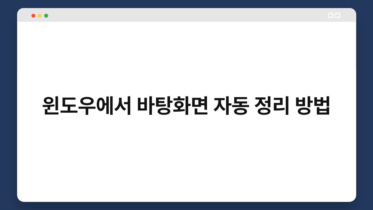 바탕화면에 쌓인 파일들, 정리하기가 쉽지 않죠? 이럴 때마다 마음이 불편해지곤 합니다. 하지만 걱정하지 마세요. 윈도우에서 바탕화면을 자동으로 정리하는 방법이 있습니다. 이 글에서는 그 방법을 단계별로 안내해 드리겠습니다. 간단한 설정만으로도 깔끔한 바탕화면을 유지할 수 있으니, 끝까지 함께해 주세요. 바탕화면 정리의 필요성 왜 바탕화면 정리가 중요할까요? 바탕화면은 컴퓨터를 사용할 때 가장 먼저 눈에 띄는 공간입니다. 이곳이 어지럽히면 … 더 읽기