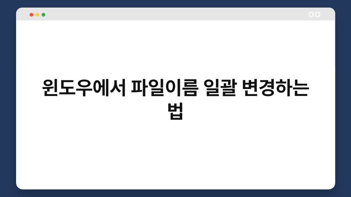 파일 이름을 바꾸고 싶은데, 하나하나 수작업으로 변경하기는 번거롭죠? 윈도우에서 파일 이름을 일괄적으로 변경하는 방법을 알면 훨씬 수월하게 작업할 수 있습니다. 이 글에서는 간단한 팁과 함께 다양한 방법을 소개해드릴게요. 파일 이름을 효율적으로 관리하고 싶다면 끝까지 읽어보세요. 여러분의 시간을 절약할 수 있는 유용한 정보가 가득하답니다. 파일 탐색기를 통한 간단한 변경 방법 기본적인 파일 이름 변경 파일 탐색기를 … 더 읽기