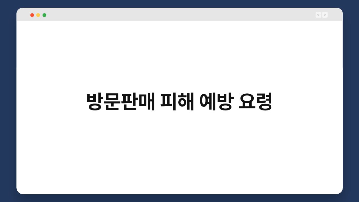 불법 방문판매, 한 번의 잘못된 선택이 큰 피해로 이어질 수 있습니다. 특히 요즘처럼 다양한 상품과 서비스가 넘쳐나는 시대에는 더욱 조심해야 하죠. 이 글에서는 방문판매 피해를 예방하기 위한 요령을 소개할 예정입니다. 신뢰할 수 있는 정보를 통해 여러분이 안전하게 소비할 수 있도록 도와드리겠습니다. 함께 알아보시죠! 방문판매의 정의와 특징 방문판매란 무엇인가요? 방문판매는 판매자가 소비자의 집이나 사무실을 직접 방문하여 … 더 읽기