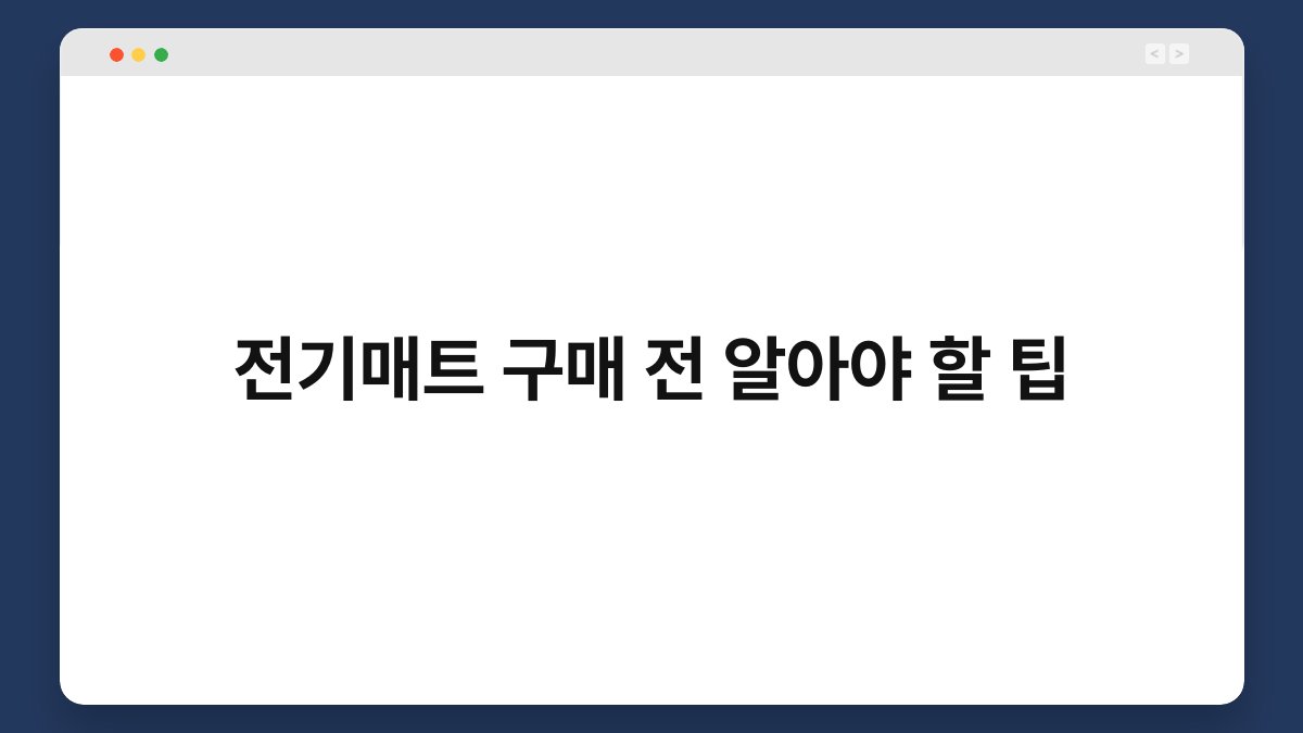 추운 겨울, 따뜻한 전기매트는 필수 아이템이죠. 하지만 전기매트를 구매하기 전에 알아야 할 팁이 많습니다. 어떤 제품이 안전하고 효율적인지, 사용 시 주의할 점은 무엇인지 고민해보셨나요? 이 글에서는 전기매트를 선택할 때 고려해야 할 중요한 요소들을 소개할게요. 마지막까지 읽으시면 후회 없는 구매를 할 수 있을 거예요. 전기매트의 안전성 확인하기 전기매트를 구매할 때 가장 먼저 고려해야 할 점은 안전성입니다. … 더 읽기