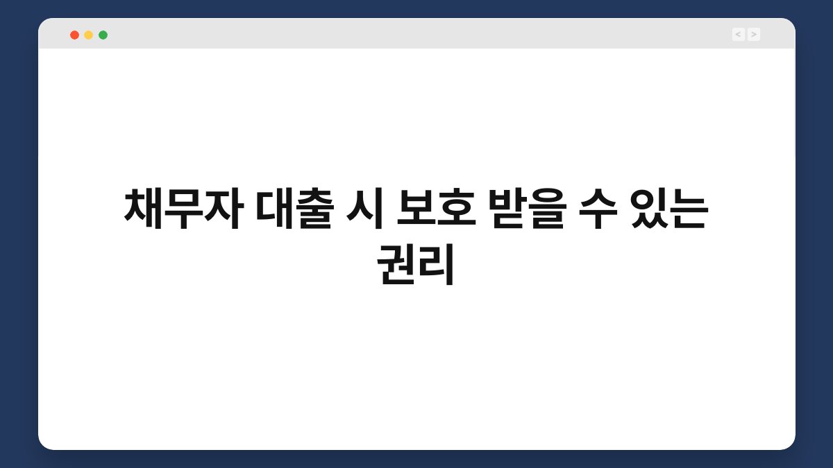 대출을 고려할 때, 많은 사람들이 불안한 마음을 느끼곤 합니다. 특히, 채무자가 되는 경우에는 더욱 그렇죠. 하지만 여러분이 알아야 할 것은, 대출을 받을 때 보호받을 수 있는 권리가 있다는 점입니다. 이 글에서는 채무자가 대출 시 누릴 수 있는 다양한 권리에 대해 살펴보겠습니다. 여러분의 권리를 이해하면, 더 현명한 금융 결정을 내리는 데 큰 도움이 될 것입니다. 대출 … 더 읽기