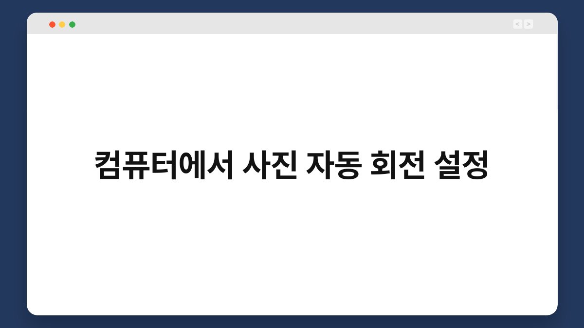 사진을 찍고 나면, 기분이 좋죠? 그런데 가끔은 사진이 잘못된 방향으로 저장되어 당황할 때가 있습니다. 이럴 때 유용한 것이 바로 컴퓨터에서 사진 자동 회전 설정입니다. 이 설정을 통해 사진을 자동으로 올바른 방향으로 회전시킬 수 있어요. 이번 글에서는 이 설정을 어떻게 활용할 수 있는지, 그리고 그 과정에서 유용한 팁들을 함께 살펴보겠습니다. 컴퓨터에서 사진 자동 회전 설정이란? 사진을 … 더 읽기