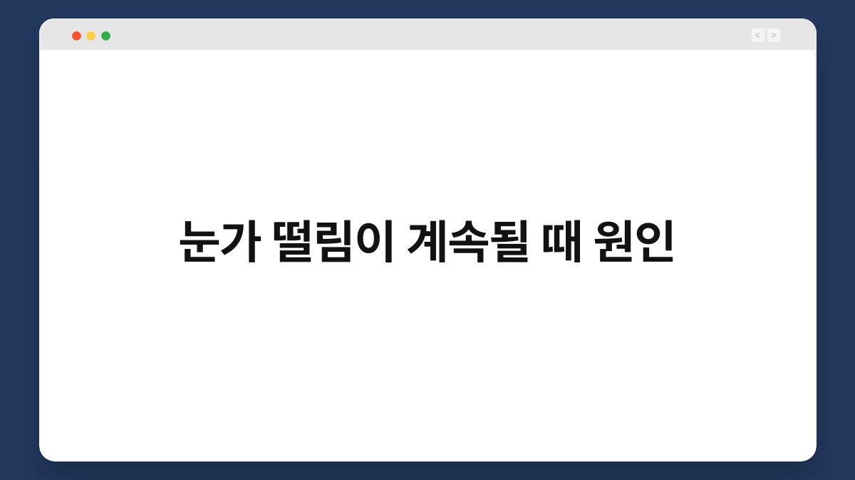 눈가 떨림이 계속될 때, 그 원인은 무엇일까요? 많은 분들이 경험하는 이 증상은 불안감이나 피로와 깊은 연관이 있습니다. 그러니 눈가 떨림이 지속된다면, 단순한 피로로 넘기지 말고 그 원인을 살펴보는 것이 중요합니다. 이번 글에서는 눈가 떨림의 다양한 원인과 해결 방법에 대해 알아보겠습니다. 함께 알아보며 건강한 눈을 유지하는 데 도움을 드리겠습니다. 스트레스와 눈가 떨림의 관계 눈가 떨림은 종종 … 더 읽기