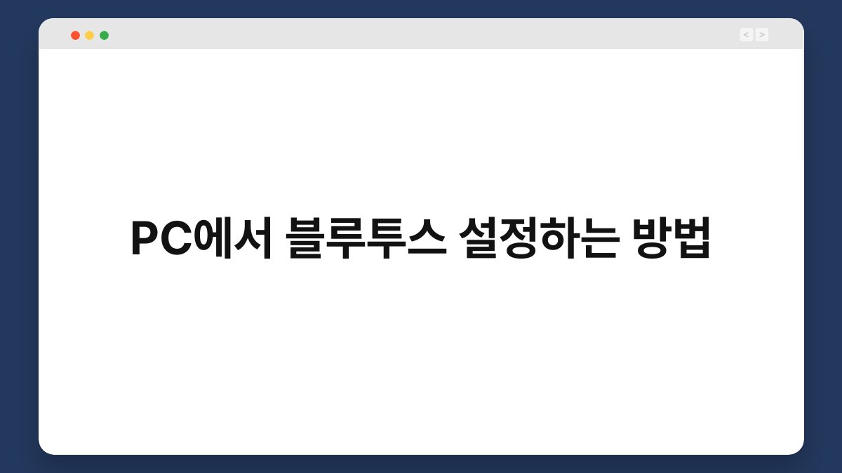 블루투스 기능이 있는 PC, 하지만 설정 방법이 헷갈리시죠? 많은 분들이 블루투스를 통해 무선 이어폰이나 키보드 등 다양한 기기를 연결하고 싶어 하지만, 처음에는 어떻게 설정해야 할지 막막할 수 있습니다. 이 글에서는 PC에서 블루투스 설정하는 방법을 단계별로 쉽게 설명드릴게요. 블루투스를 활용해 보다 편리한 PC 사용을 경험해 보세요. 지금부터 함께 알아보겠습니다!