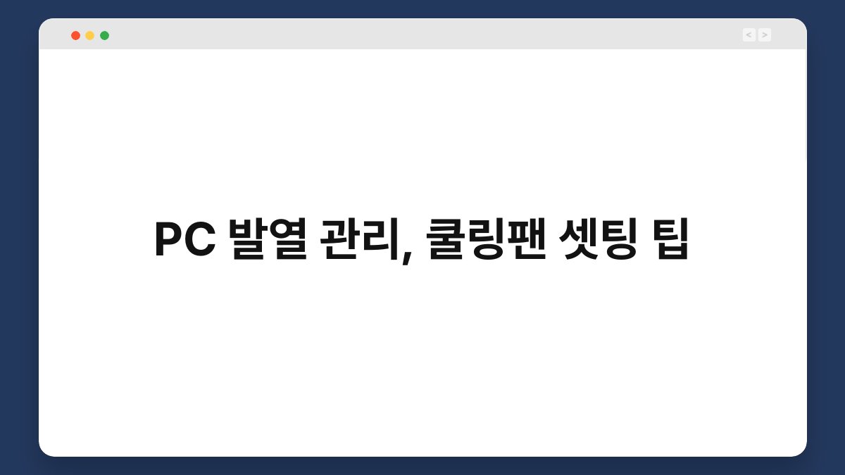 PC를 사용할 때 가장 불편한 문제 중 하나는 발열 관리입니다. 발열이 심해지면 성능 저하뿐만 아니라 하드웨어 손상까지 초래할 수 있죠. 그래서 적절한 쿨링팬 셋팅은 필수입니다. 이 글에서는 PC 발열 관리의 중요성과 효과적인 쿨링팬 셋팅 팁을 소개하겠습니다. 끝까지 읽으신다면, 여러분의 PC를 더욱 안전하고 효율적으로 운영할 수 있는 방법을 알게 되실 거예요.
