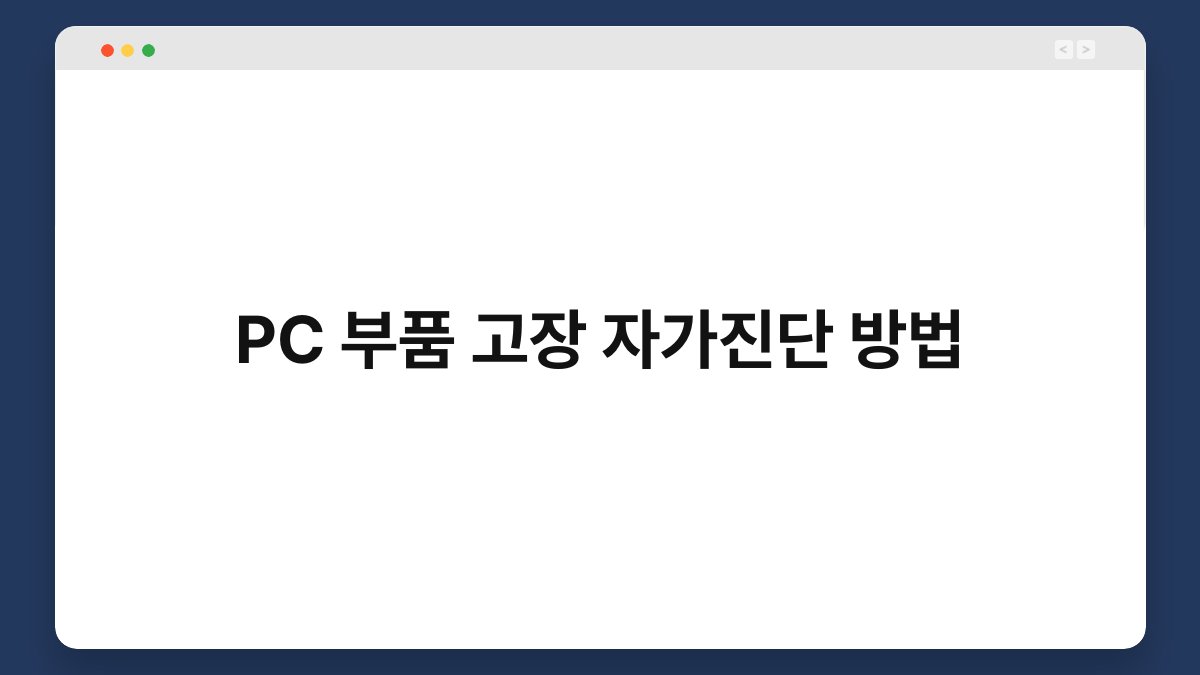 컴퓨터를 사용하다 보면 가끔씩 예상치 못한 문제에 부딪히게 됩니다. PC 부품 고장, 정말 당황스럽죠? 하지만 걱정하지 마세요. 자가진단 방법을 통해 문제를 스스로 확인하고 해결할 수 있습니다. 이 글에서는 PC 부품 고장 자가진단 방법에 대해 알아보겠습니다. 간단한 점검으로 문제의 원인을 파악하고 해결하는 법을 함께 살펴보아요.