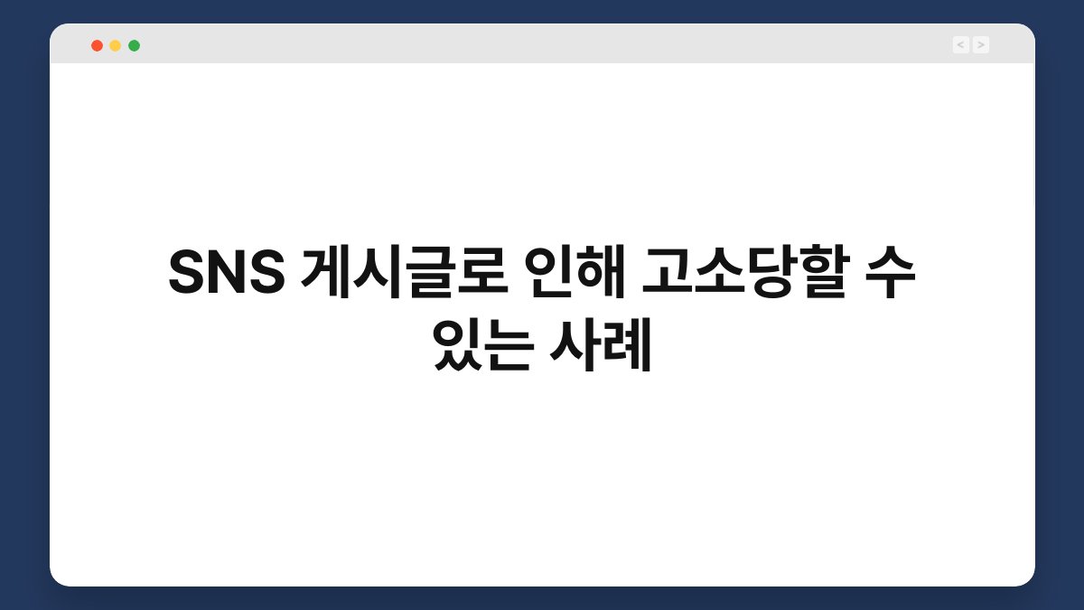 SNS에서의 자유로운 표현, 매력적이지만 그만큼 위험할 수 있습니다. 소셜 미디어는 개인의 생각과 경험을 공유하는 훌륭한 플랫폼이지만, 잘못된 게시글 하나로 법적 문제에 휘말릴 수 있다는 사실, 알고 계신가요? 고소당할 수 있는 사례는 생각보다 다양합니다. 이 글에서는 SNS 게시글로 인해 고소당할 수 있는 여러 가지 사례를 살펴보며, 예방 방법도 함께 알아보겠습니다. 여러분이 소셜 미디어를 더 안전하게 사용할 수 있도록 돕고자 합니다.