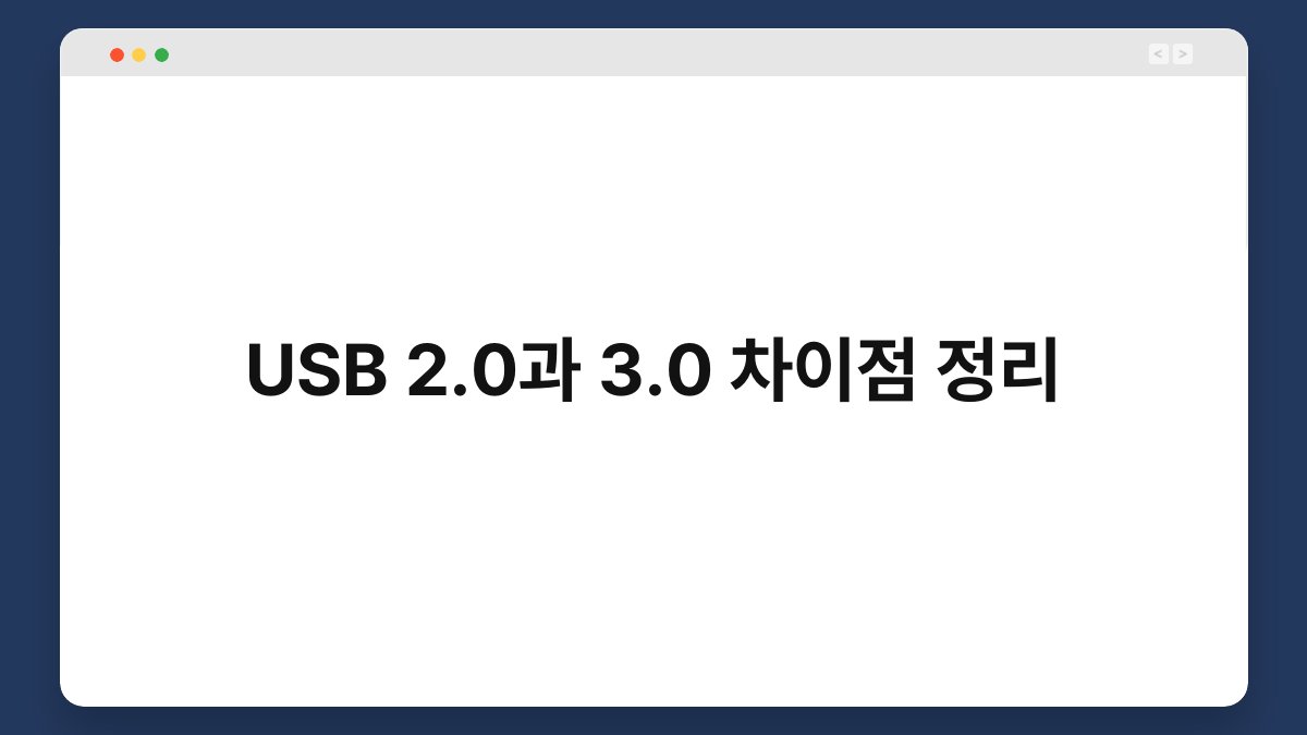 컴퓨터나 스마트폰을 사용할 때, USB 포트의 종류를 잘 알고 계신가요? USB 2.0과 3.0은 각각의 특성과 속도에서 큰 차이를 보입니다. 이 글에서는 두 버전 간의 차이점과 각각의 장단점을 알아보겠습니다. USB를 활용하는 데 있어 필수적인 정보이니, 끝까지 읽어보세요. 당신의 선택이 더 나은 사용 경험으로 이어질 수 있습니다.