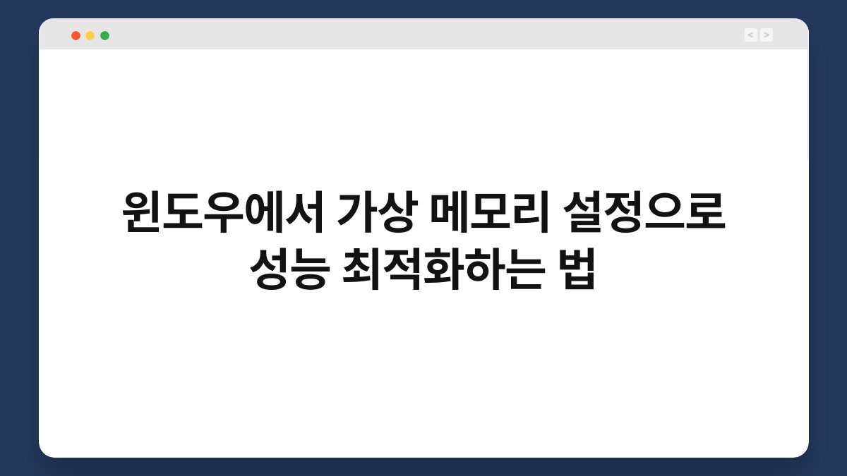 컴퓨터를 사용할 때, 느려지는 속도나 프로그램의 멈춤 현상은 누구나 겪는 문제입니다. 이럴 때 가상 메모리 설정을 통해 성능을 최적화하는 방법을 알면 큰 도움이 됩니다. 가상 메모리는 시스템이 사용하는 메모리 공간을 확장해 주는 역할을 하며, 이를 통해 컴퓨터의 전반적인 성능을 향상시킬 수 있습니다. 이번 글에서는 윈도우에서 가상 메모리를 설정하는 방법과 그로 인해 얻을 수 있는 이점에 대해 자세히 알아보겠습니다. 끝까지 읽으시면, 여러분의 컴퓨터가 한층 더 빨라지는 경험을 하실 수 있을 거예요.