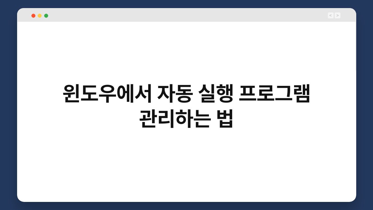 컴퓨터를 켜면 자동으로 실행되는 프로그램들, 불편함을 느끼신 적 있으신가요? 불필요한 프로그램들이 실행되면 시스템 속도가 느려지고, 작업에 방해가 될 수 있습니다. 이런 문제를 해결하기 위해서는 윈도우에서 자동 실행 프로그램을 관리하는 법을 알아두는 것이 중요합니다. 이 글에서는 간단한 방법으로 여러분의 컴퓨터를 최적화할 수 있는 팁을 제공하겠습니다. 함께 알아보도록 해요.